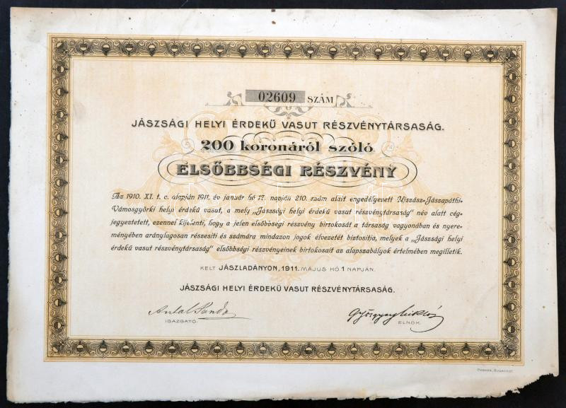 https://www.darabanth.com/en/271-Online-auction/271.0/Numismatics/Shares-and-Tickets~300005/Jaszladany-1911-Jaszsagi-Helyi-Erdeku-Vasut-Reszvenytarsasag-200K-rol-szolo-elsobb~II1309113
