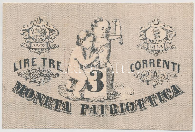 Olasz Államok / Velence / Moneta Patriottica 1848. 3L hátoldalon bélye... https://www.darabanth.com/en/271-Online-auction/271.0/Numismatics/Worldwide-banknotes~300012/Olasz-Allamok-Velence-Moneta-Patriottica-1848-3L-hatoldalon-belyegzessel-TIII--Italian-Sta~II1373053