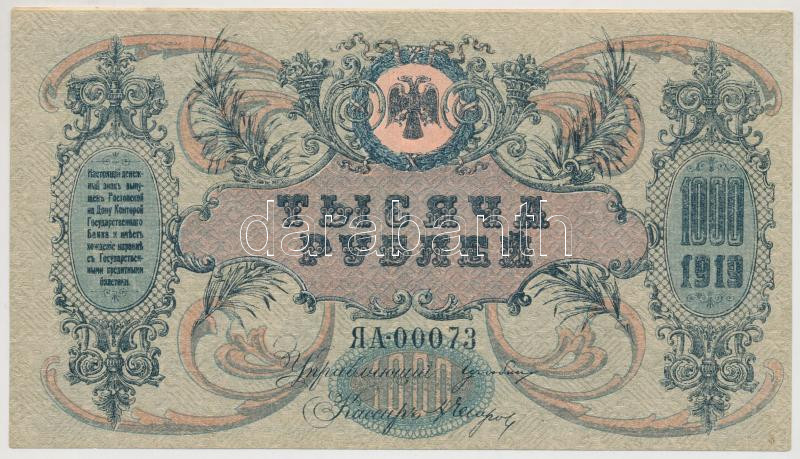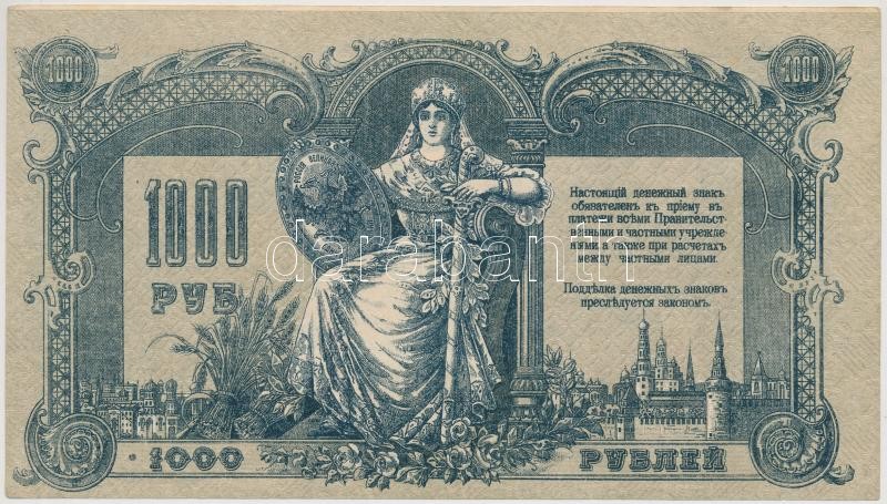 Orosz Polgárháború / Dél-Oroszország / Gyenyikin és Vrangel Hadserege ... https://www.darabanth.com/en/271-Online-auction/271.0/Numismatics/Worldwide-banknotes~300012/Orosz-Polgarhaboru-Del-Oroszorszag-Gyenyikin-es-Vrangel-Hadserege-1919-1000R-TI---Russia~II1372976