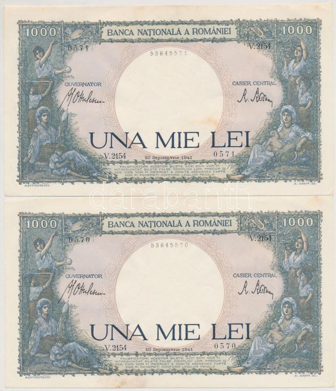 https://www.darabanth.com/en/271-Online-auction/271.0/Numismatics/Worldwide-banknotes~300012/Romania-1941-1000L-2x-sorszamkovetok-TI-II--Romania-1941-1000-Lei-2x-sequential-serials-~II1372966