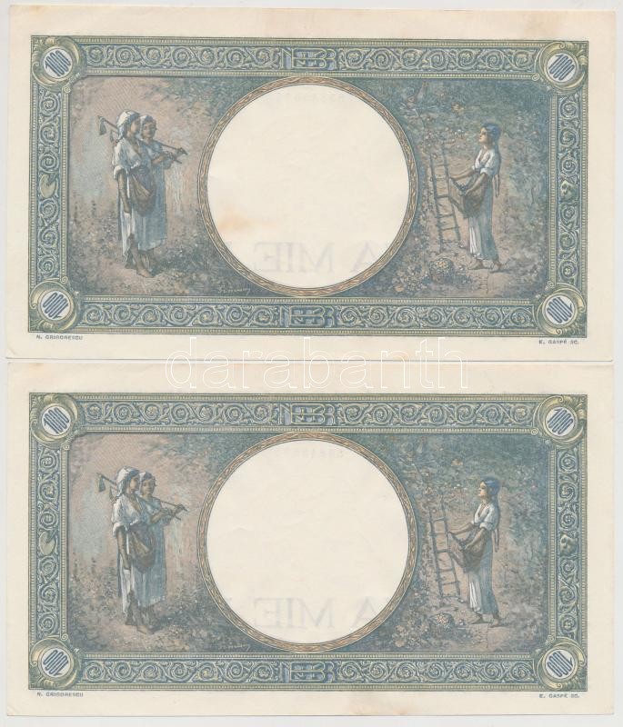 Romania 1941. 1000 Lei (2x) sequential serials C:AU,XF