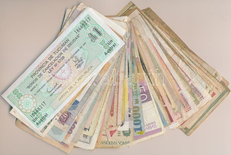 Description: Vegyes bankjegy tétel a világ minden tájáról (91x) + Argentína / Tucumán Provincia 1991. 1A "Bonos de Cancelation de Deudas" T:II-III-