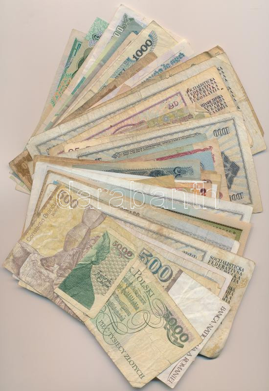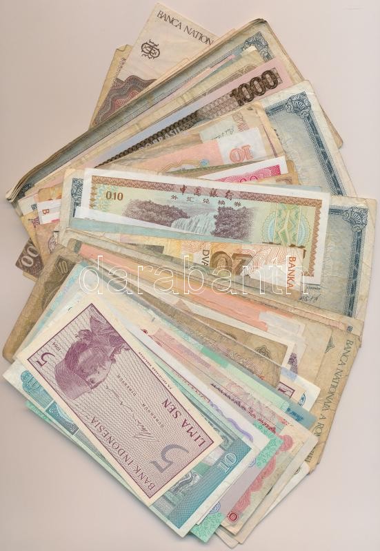 Vegyes bankjegy tétel a világ minden tájáról, több Európán kívüli országból, közte tanzániai, vitenámi, indonéz, kambodzsai és mongol bankjegyek is (~98x) T:I-III Mixed lot of banknotes from all around the world, many notes from outside Europe, including Tansanian, Vietnamese, Indonesian, Cambodian and Mongolian banknotes (~98x) C:UNC-F