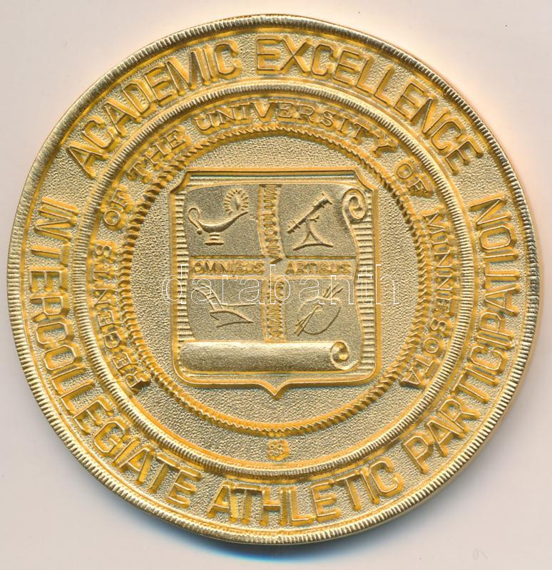Description: Amerikai Egyesült Államok DN "Tudományos Kiválóság - Egyetemközi Atlétikai Részvétel - Minnesotai Egyetem" aranyozott fém emlékérem (62mm) T:1-