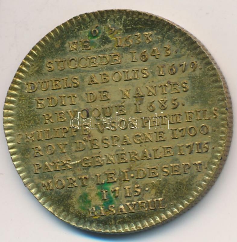 Franciaország ~1900. "XIV. Lajos" Br emlékérem "Francia... https://www.darabanth.com/en/271-Online-auction/271.0/Numismatics/Worldwide-commemorative-medallions-and-plaques~300014/Franciaorszag-7E1900-XIV-Lajos-Br-emlekerem-Francia-Kiralyok-sorozat-13-06g32mm-T2-ph-~II1378300