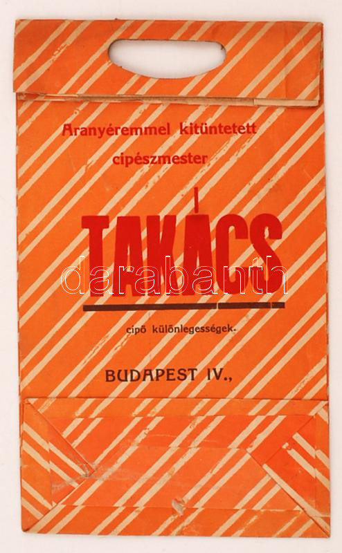 cca 1930 Bp., V. Takács cipész reklámgrafikával díszített papír reklámtáska