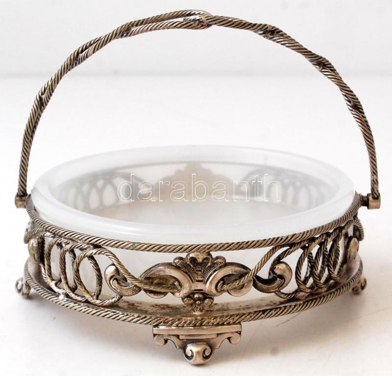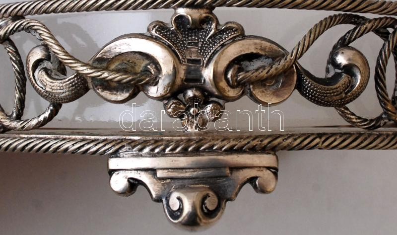Jelzett angol ezüstözött füles kínáló, tejüveg betéttel, hibátlan, m:1...