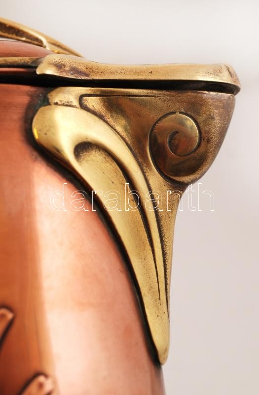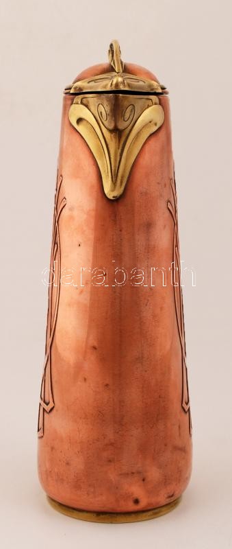 Szecessziós karaffa, jelzés nélkül, apró horpadással, rezezett fém, m:30 cm
