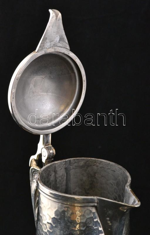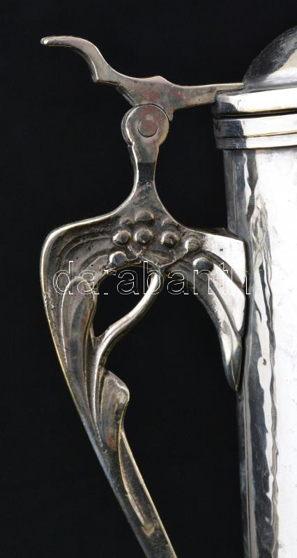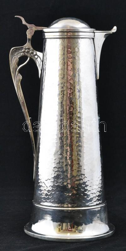 Szecessziós stílusú fém karaffa, jelzett (H), m:32 cm