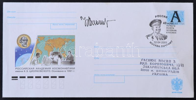 Description: Borisz Jelcin (1931-2007) orosz elnök aláírása űrhajós emlékborítékon /