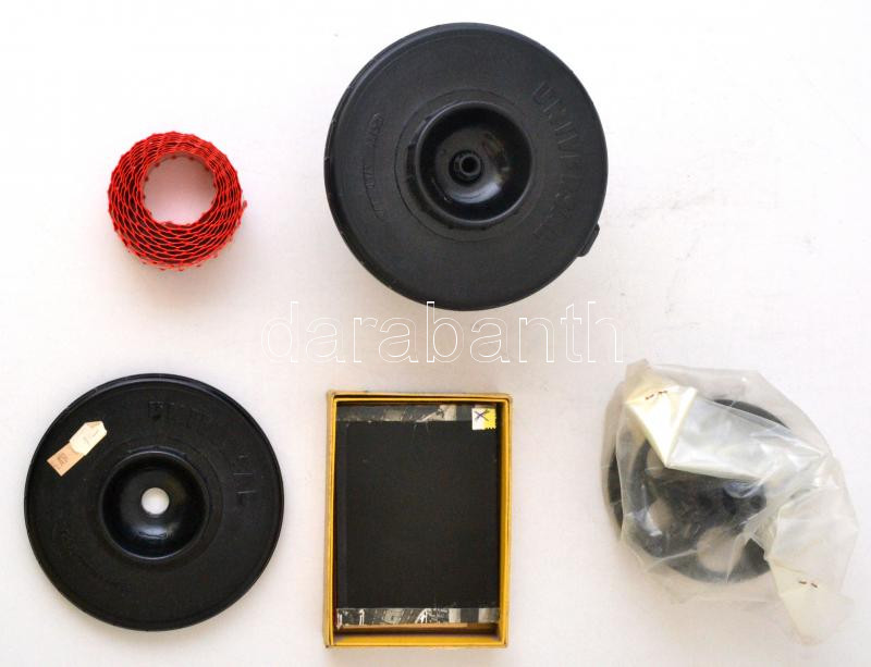 Vegyes fotóelőhíváshoz használt retró tételek, 5db-os, benne szűrő nagyításhoz, bakelit előhívő, stb.