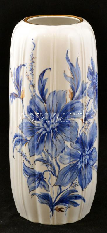 Ceroc virág mintás váza, kézzel festett, jelzett, hibátlan, m:37 cm