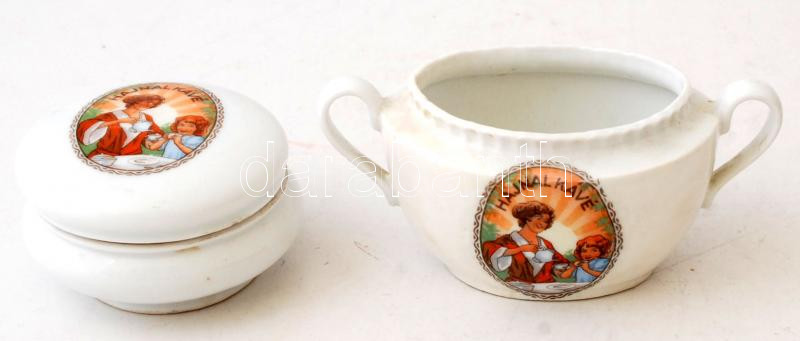 Hajnal kávé reklámos Victoria porcelán cukortartó / Coffe commercial on sugar container 14x7 cm
