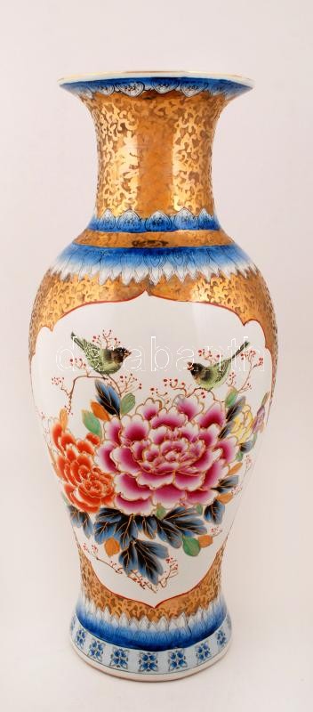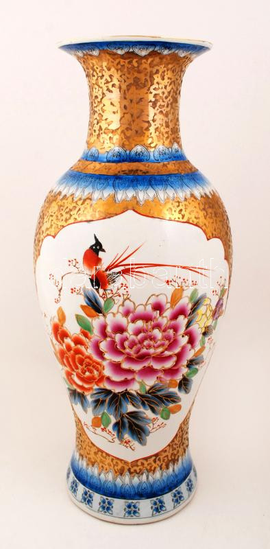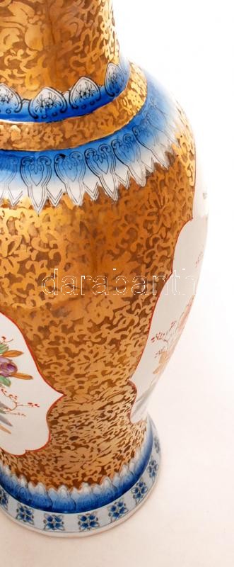 Kínai jelzett padlóváza, kézzel festett, hibátlan, m:63 cm