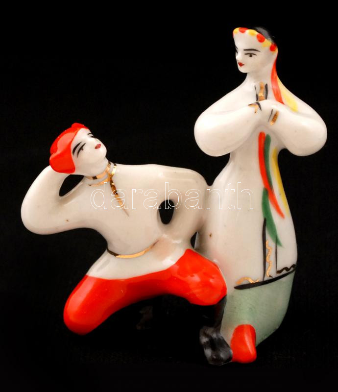 Táncosok, kisméretű figurális porcelán, kézzel festett, jelzett, apró ...