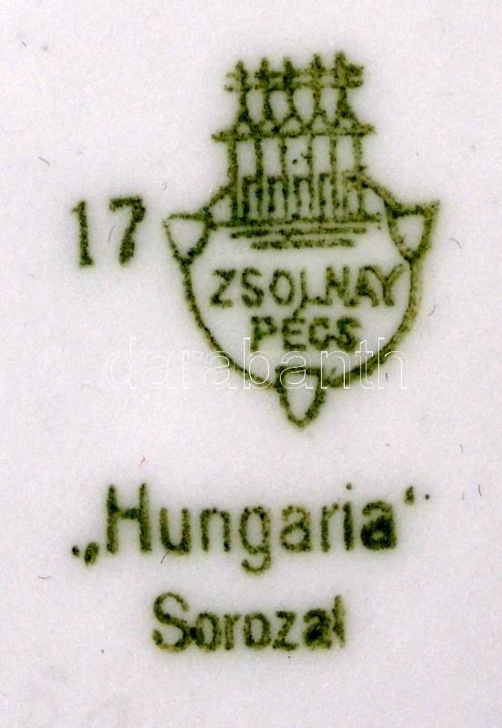 Zsolnay Hungária sorozat porcelán tál, kopott aranyozással, jelzett, d...