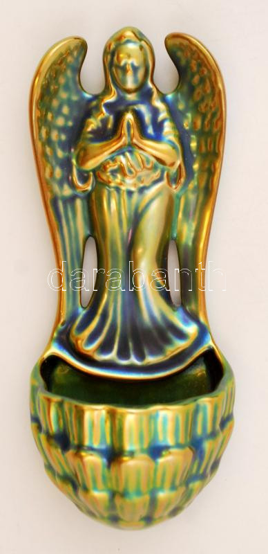 Zsolnay eozin mázas szenteltvíztartó, jelzett, hibátlan, 17×7 cm