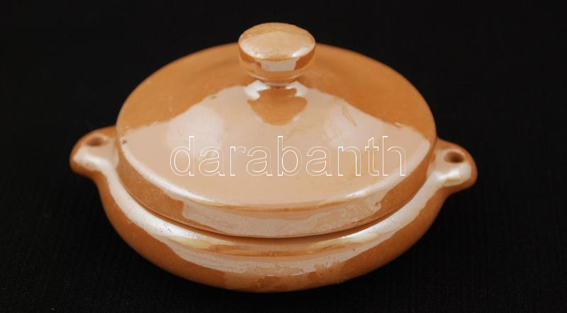 Zsolnay porcelán fedeles patika tégely, hibátlan, jelzett, d: 6 cm, m: 3 cm