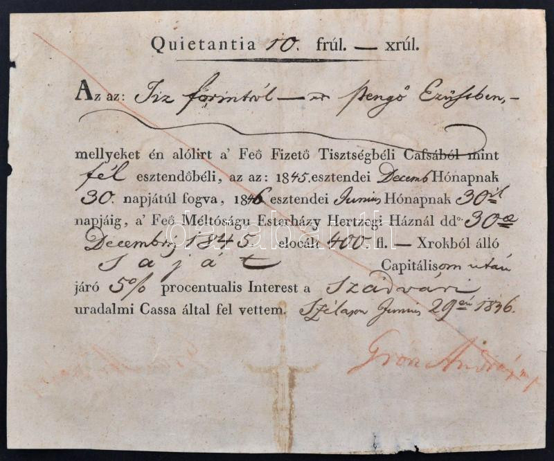 1845 Eszterházy hercegi ház elismervénye 10ft ról
