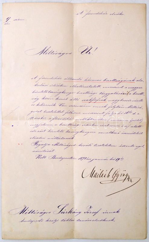 1878 Bp., Mailáth György(1818-1883) a főrendiház elnökének felkérése S... https://www.darabanth.com/en/271-Online-auction/271.0/Other-collectibles/Documents~17/1878-Bp-Mailath-Gyorgy1818-1883-a-forendihaz-elnokenek-felkerese-Sarkozy-Jozsefnek-az~II1378115