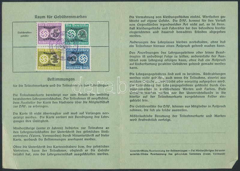 1939 a Német Munkafront tagsági igazolványa, tagdíjbefizetési bélyegekkel /