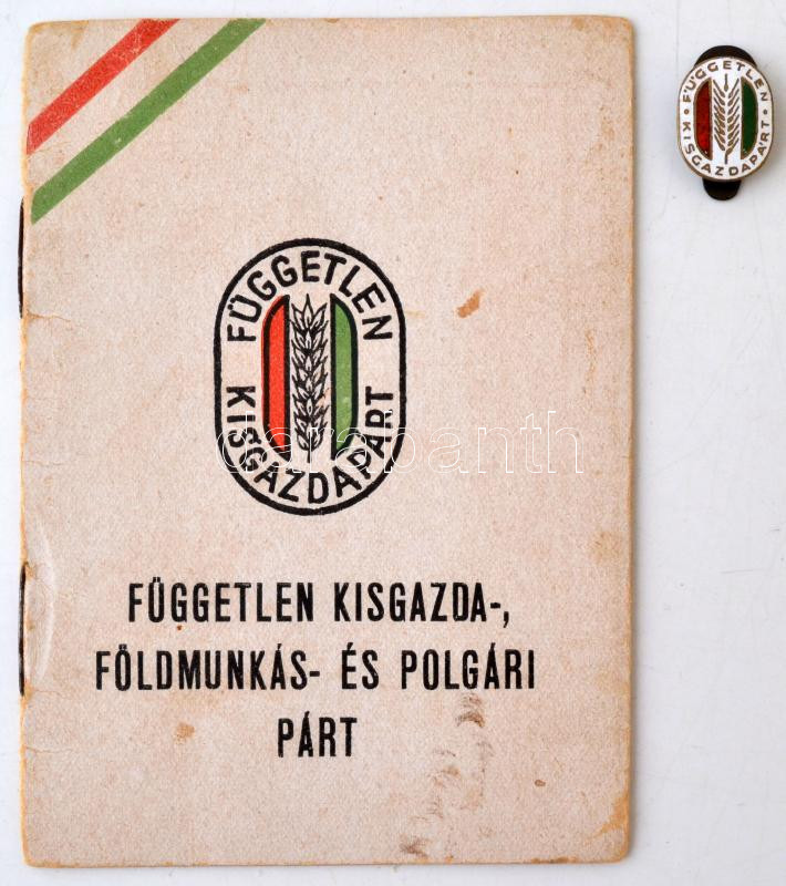 1946 FKGP Kisgazda Párt tagsági igazolvány sok bélyeggel és zománcozott gomblyukjelvénnyel