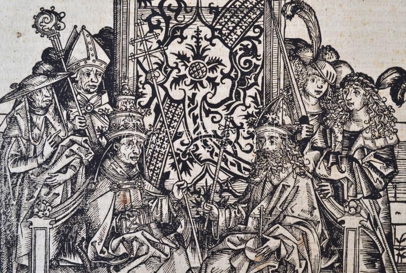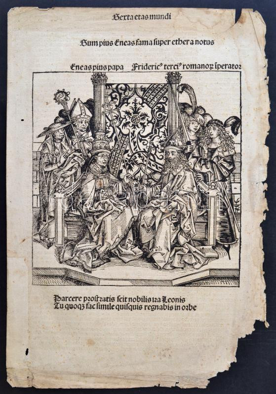 1493 A Hartmann Schedel krónika egy lapja, rajta II. Piusz pápa és III... https://www.darabanth.com/en/271-Online-auction/271.0/Other-collectibles/Engravings~4/1493-A-Hartmann-Schedel-kronika-egy-lapja-rajta-II-Piusz-papa-es-III-Frigyes-nemet-romai-csC3~II1370731