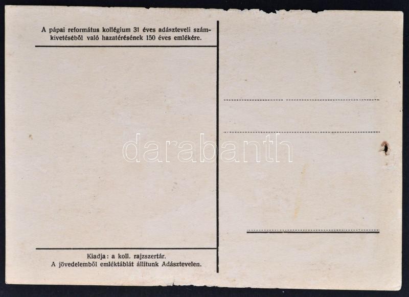 A. Tóth Sándor (1904-1980): Pápai református kollégium üdvözlőlap. Lin...