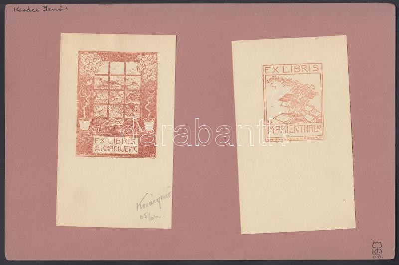 Vegyes ex libris tétel: benne Monori Kovács Jenő (?-?)és A. Pion(?-?) ... https://www.darabanth.com/en/271-Online-auction/271.0/Other-collectibles/Ex-libris-small-graphics~2/Vegyes-ex-libris-tetel-benne-Monori-Kovacs-Jeno-es-A-Pion--is-klisek-es-metszetek~II1366600