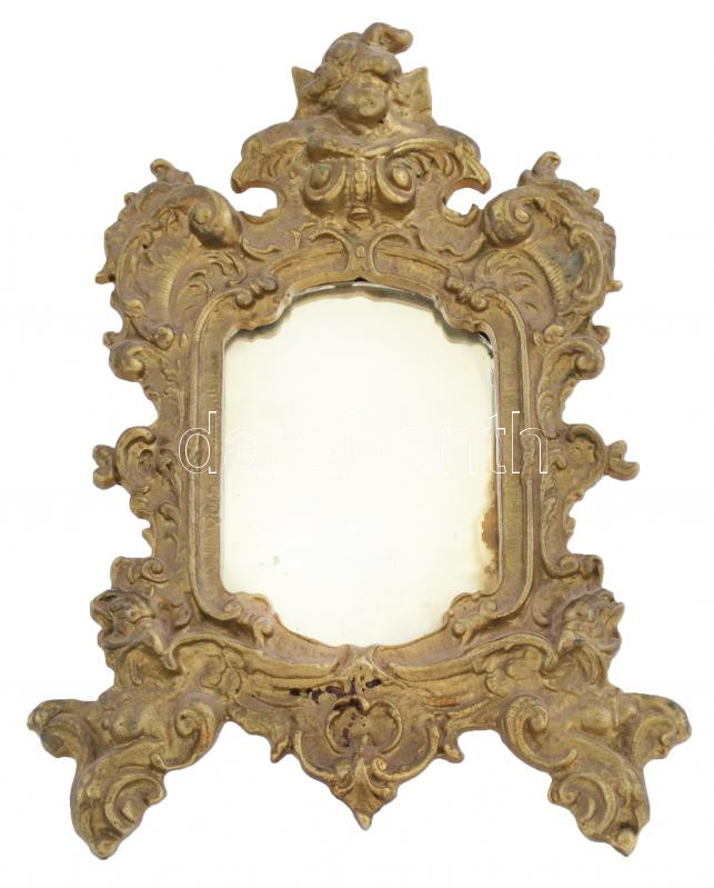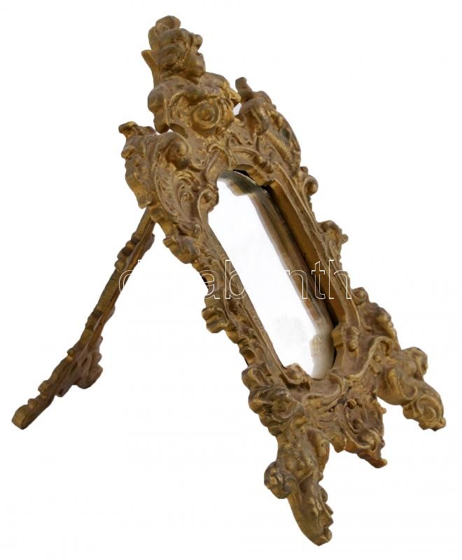 Barokk stílusú, asztalra állítható réz tükör, 28x17 cm