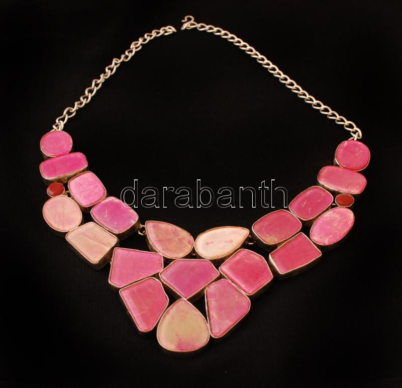 Ezüstözött irizáló rózsaszín elemekkel díszített mutatós nyakék, szép ...