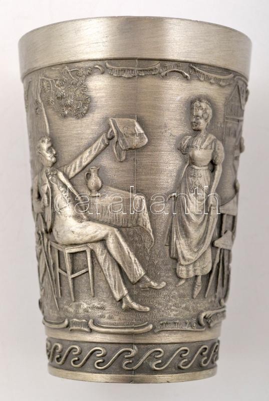 Nagy vegyes ón tétel: evőeszközök, poharak, dísztányérok, stb.