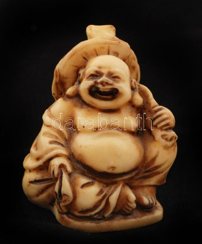 Nevető Buddha figura, műanyag, eredeti dobozában, m:4,5 cm