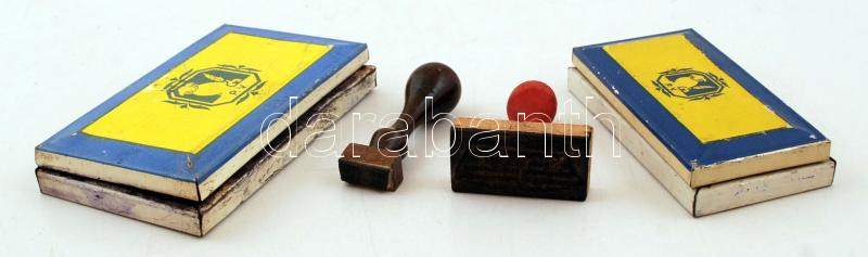 Politúr és vegyitermék KSZ. zománcozott fém pecsételő párna tartó fém dobozka. 11x6, 12x7 cm + hozzá két pecsétnyomó