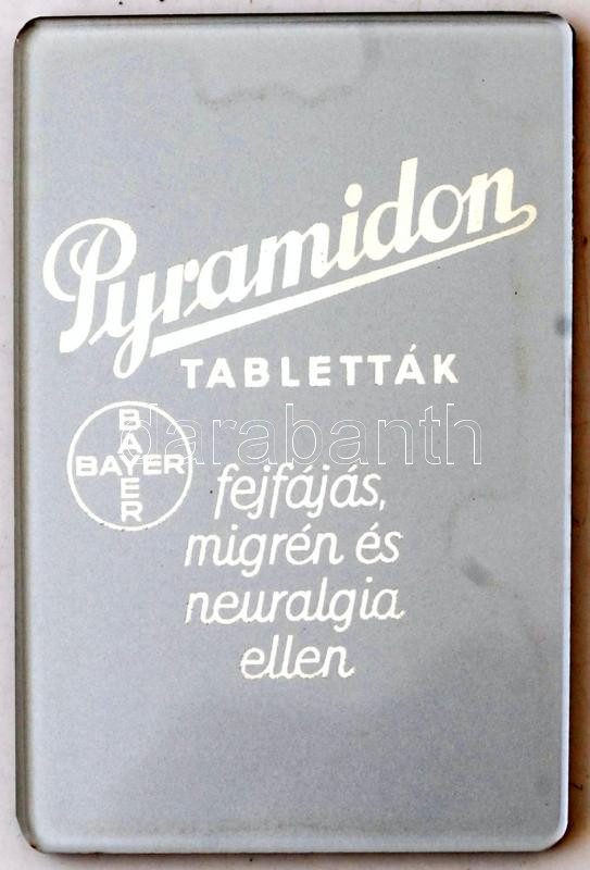 cca 1930 Pyramidon tabletta gyógyszerreklám, a másik oldal zsebtükör, ez az oldal hibás, 6x4,5cm
