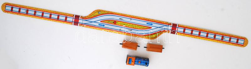 cca 1980 Tolatómozdony és vagonok. Lemezárugyári játék eredeti dobozában, újszerű állapotban kulcs kivételével kompletten / Vintage Hungarian toy
