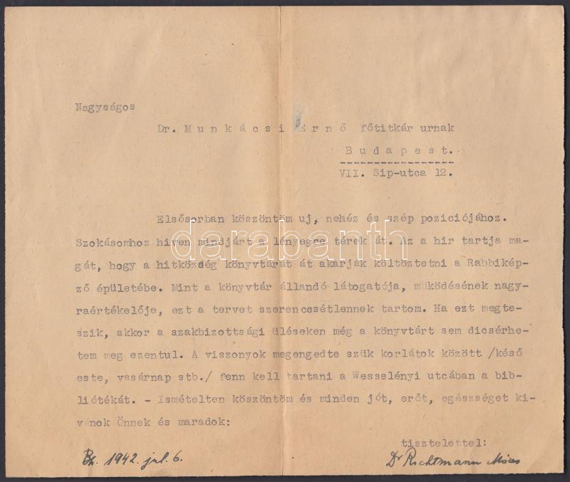 https://www.darabanth.com/en/271-Online-auction/271.0/Other-collectibles/Judaica~48/1942-Dr-Richtmann-Mozes-levele-Munkacsi-Erno-1896-1950-ugyved-jogi-iro-A-Pesti-Izraelita~II1378331