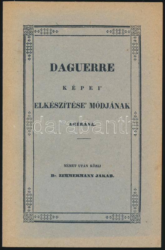 Daguerre képei elkészítése módjának leírása. Közl.: Zimmermann Jakab. ... https://www.darabanth.com/en/271-Online-auction/271.0/Other-collectibles/Literature-about-photography~22/Daguerre-kepei-elkeszitese-modjanak-leirasa-Kozl-Zimmermann-Jakab-Bp-1984-Orszago~II1348959