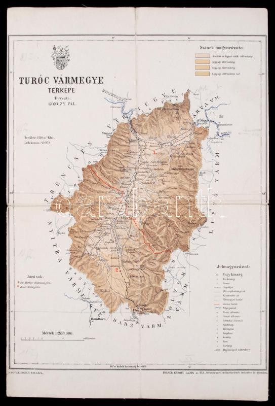 https://www.darabanth.com/en/271-Online-auction/271.0/Other-collectibles/Map~29/cca-1890-Turoc-varmegye-terkepe-tervezte-Gonczy-Pal-kiadja-Posner-Karoly-Lajos-es-Fia-ter~II1281243