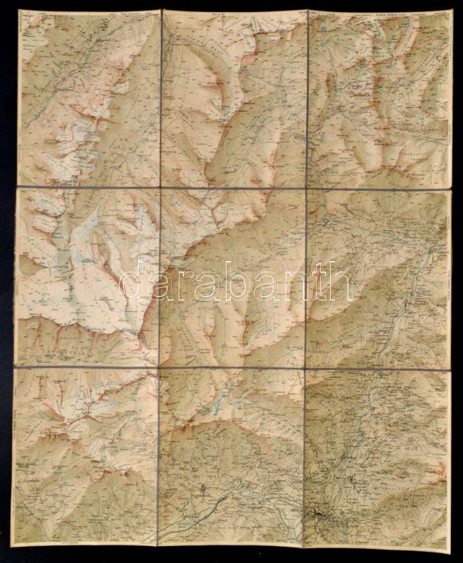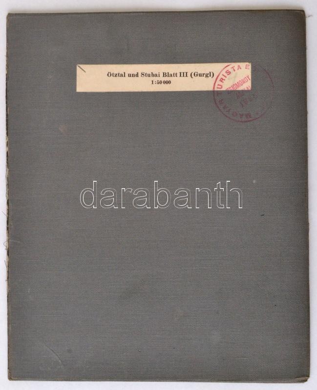 cca 1920 Ötztal und Stubai Blatt III. (Gurgl), 1:50.000, vászonra kasírozva, rajta a Magyar Turista Egyesület bélyegével, 62x52 cm.