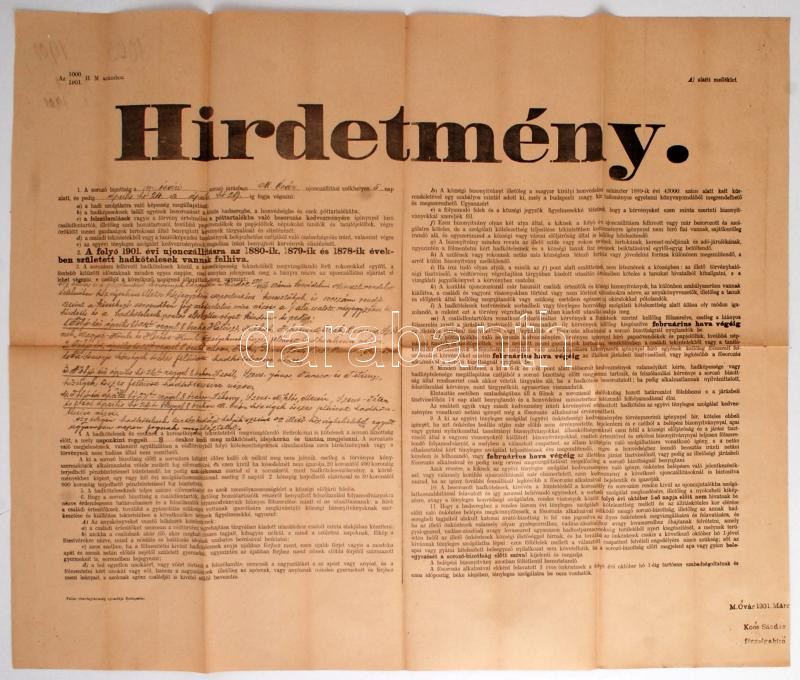 https://www.darabanth.com/en/271-Online-auction/271.0/Other-collectibles/Military~28/1901-Sorozasi-hirdetmeny-kitoltott-hajtogatott-jo-allapotu-nyomtatvany-63x74cm~II1375376