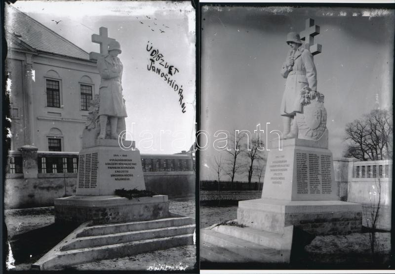Description: cca 1935 Jánoshida, az I. világháború hőseinek emlékműve, Lőcsey Árpád kecskeméti vándorfényképész hagyatékában őrzött 2 db üveglemez negatív modern nagyítása, 13x18 cm