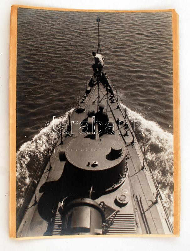 cca 1940. A 'Kecskemét' fedélzete és elülső lövege, a Dunai Flottila 'Wels'-típusú őrnaszádja, fotó kartonra kasírozva, 40x27cm