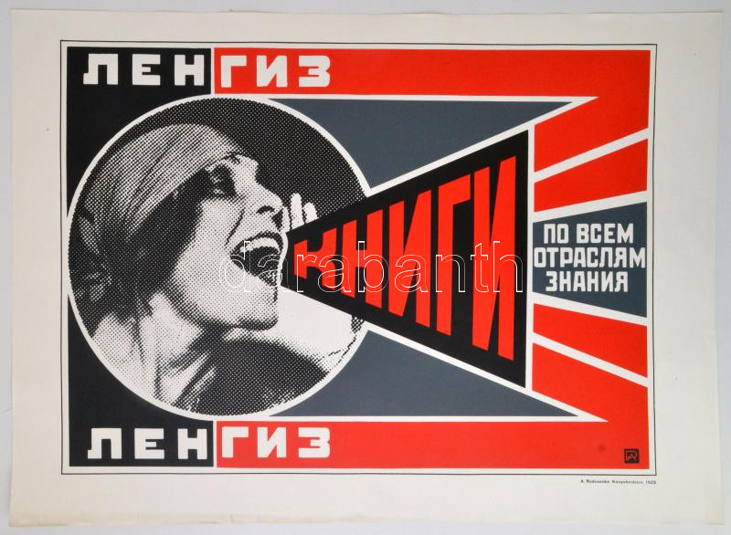 Alekszandr Mihajlovics Rodcsenko (1891. - 1956.) : Könyvhirdetés 1923.... https://www.darabanth.com/en/271-Online-auction/271.0/Other-collectibles/Paintings-and-graphics~1/Alekszandr-Mihajlovics-Rodcsenko-1891--1956-Konyvhirdetes-1923-Szitanyomat-Keszitette-1~II1375490