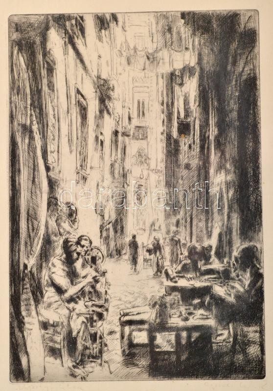 Aszódi Weil Erzsébet (1901-1976): Nápolyi utcal. Rézkarc, papír, jelze...