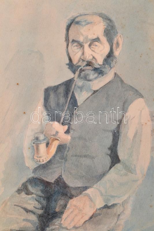 Balogh Ferenc (1910-1977): Pipázó öreg úr. Akvarell, papír, jelzett, ü...
