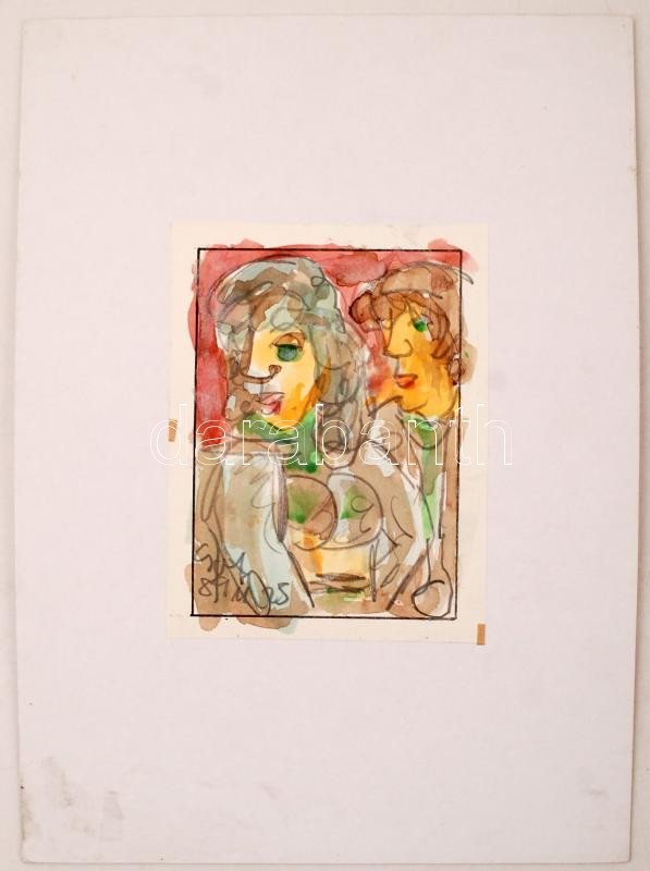 Cs. Németh Miklós (1934-2012): Párocska. Akvarell, papír, jelzett, 15×11 cm