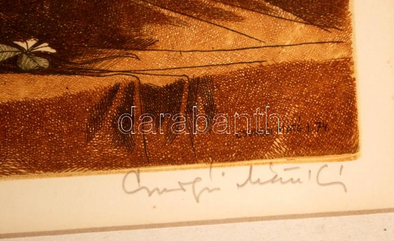 Csurgói Máté Lajos (1931-2001): Csendélet. Rézkarc, papír, jelzett, üvegezett keretben, 39×29 cm