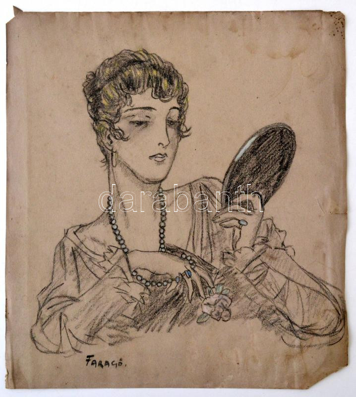 Faragó jelzéssel: Nő tükörrel, vegyes technika, papír, 26×23,5 cm