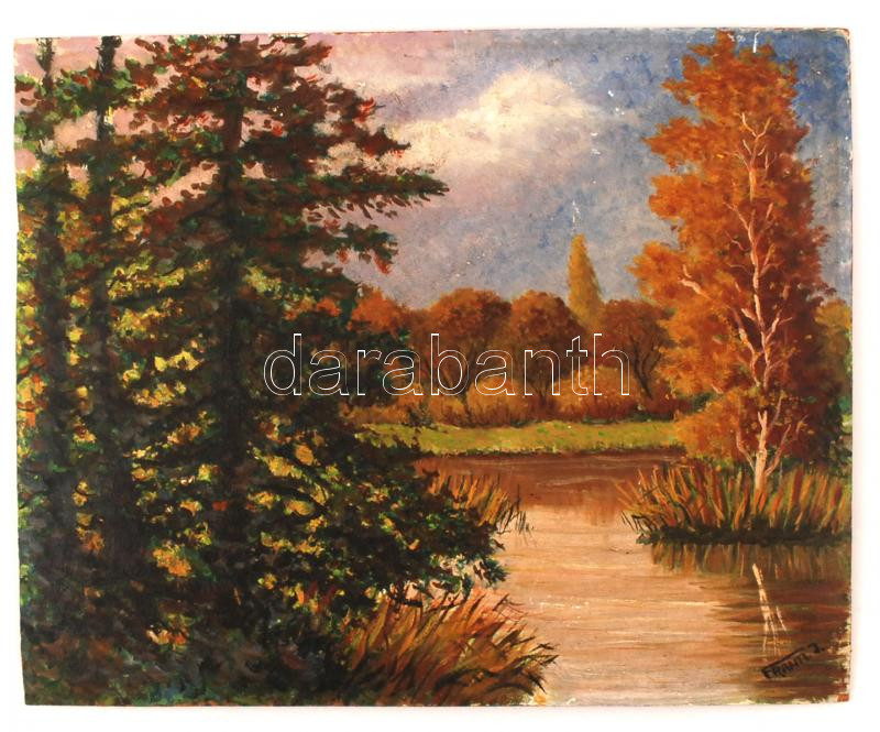 Frantz jelzéssel: Erdei tó. Olaj, farost, 40×50 cm